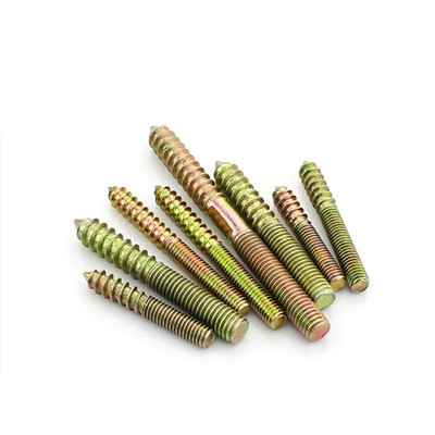 Hanger bolts have threaded areas at both ends: a lag screw thread at one end and machine screw thread on the other. They are designed for insertion into a pre-drilled hole and are ideal for overhead applications, such as suspending electrical wiring or sheet metal from wooden structures.